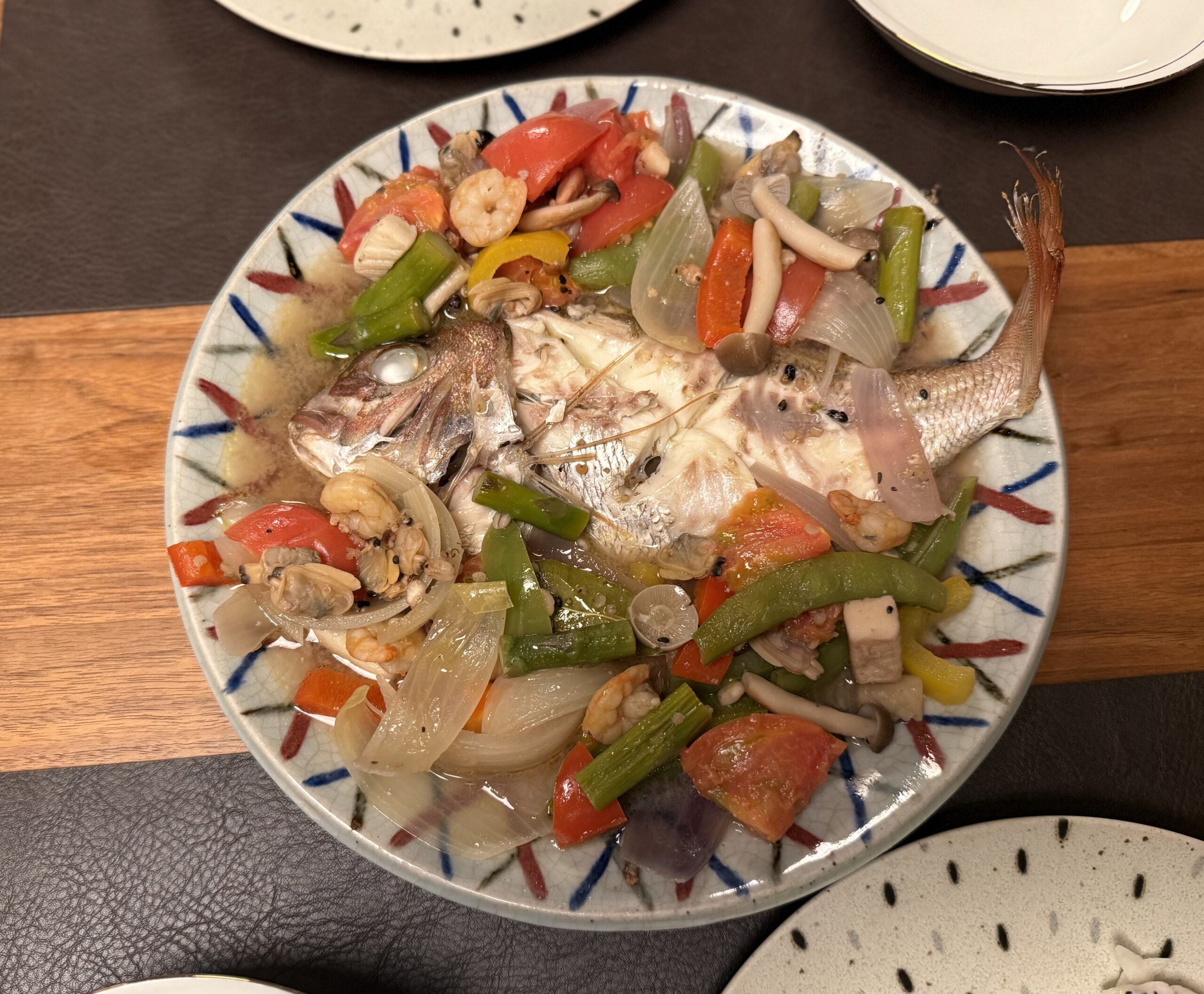 出来ましたよ。アクアパッツア、見た目もそれなりだけどスープが美味しい。思わずクッパみたいにご飯にかけたらアクアパッツアお茶づけです。そうそうスープの中には旭食品の豆入り十穀を少し炊き込んでみました。