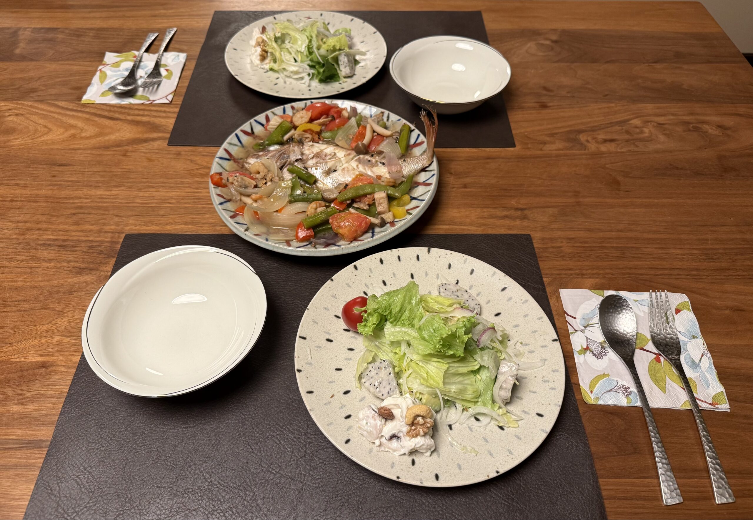 ちょっと離れたところですが、カインズホームというホームセンターに併設してベイシアというスーパーマーケットがあります。午後の時間ちょっと寄ってみたら鮮魚コーナーに真鯛を安く売っていました。二人だけですからあまり大きなものを選んでも食べきれないからその中でも小さ目のものを選んで買って来ました。
