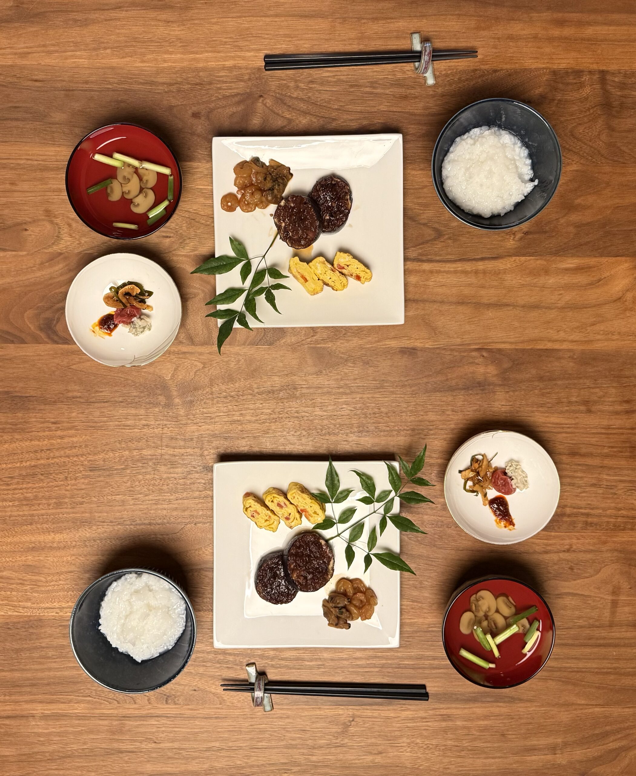 庭から南天の葉をちぎってきてお皿に載せれば、なんか雰囲気が出ますね。