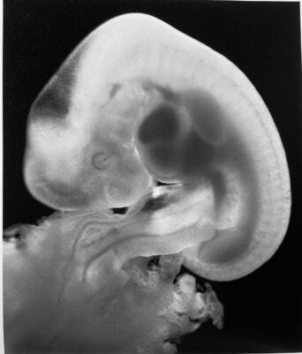 その下の方に袋のようにぶら下がっているのが卵黄嚢と呼ばれる部分で胎芽と繋がっています。もう1枚はニコル・テイラー著の赤ちゃんお誕生からの写真です。