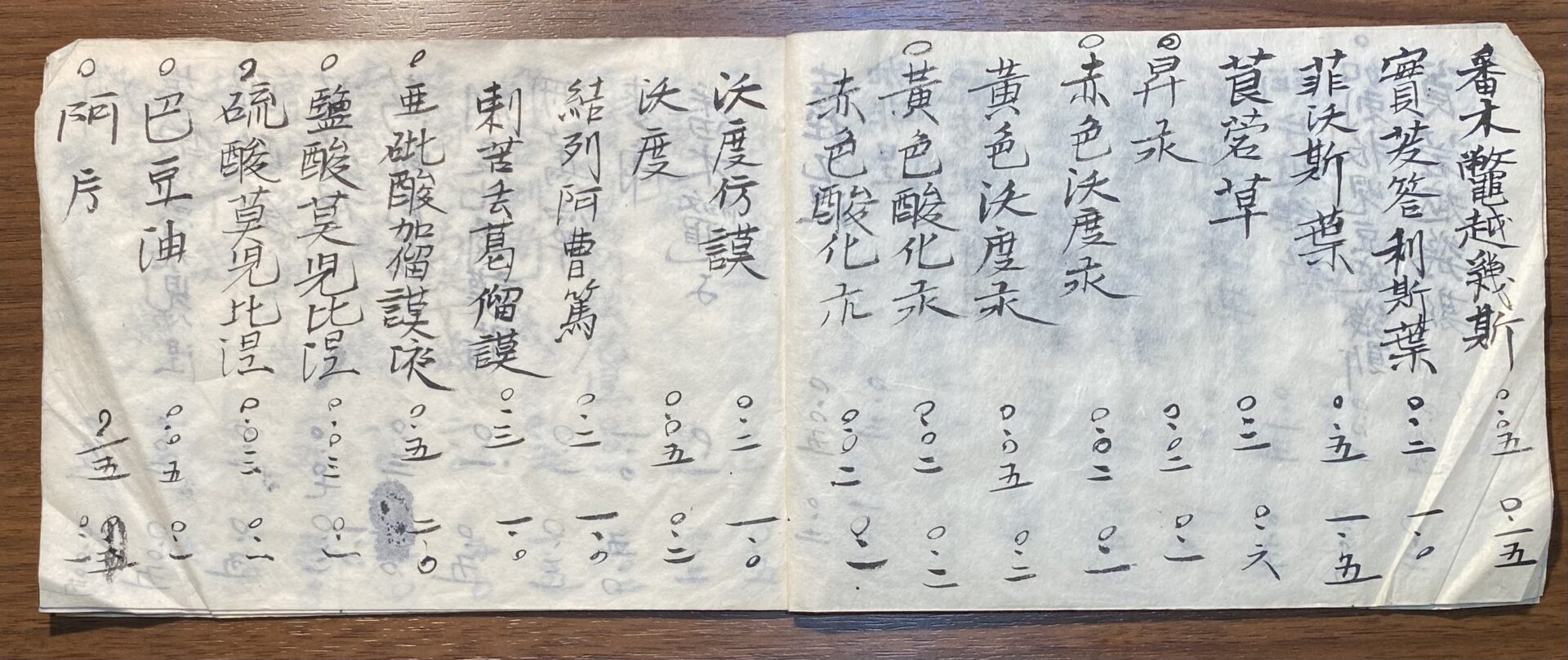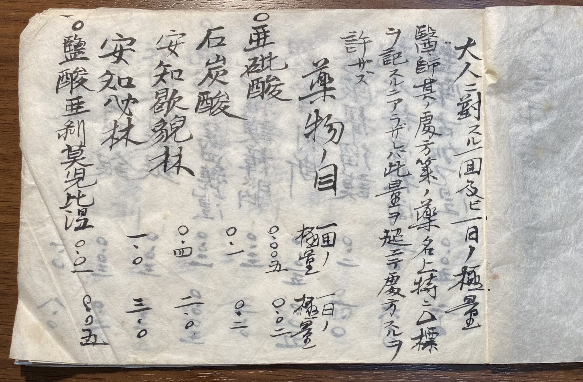 ある時、家の古い戸棚から1冊の薬剤名がたくさん書かれたメモを見つけました。日付は大正3年2月15日とあります。因みに大正3年は8月に第一次世界大戦の始まった年です。