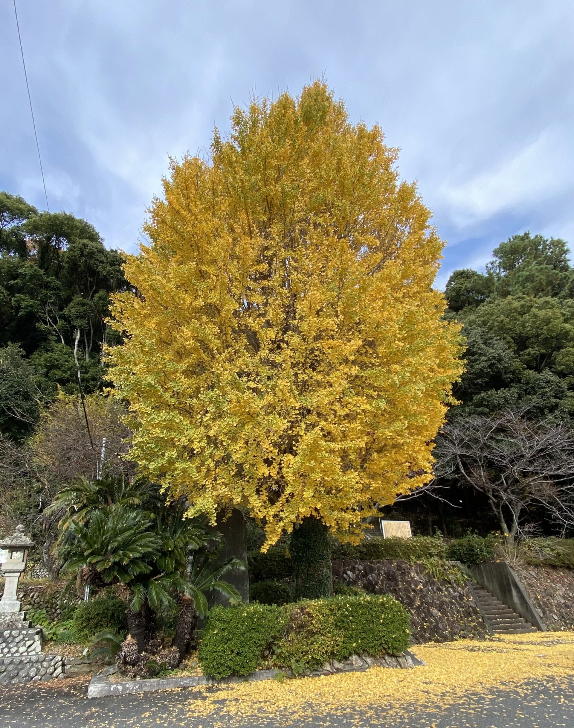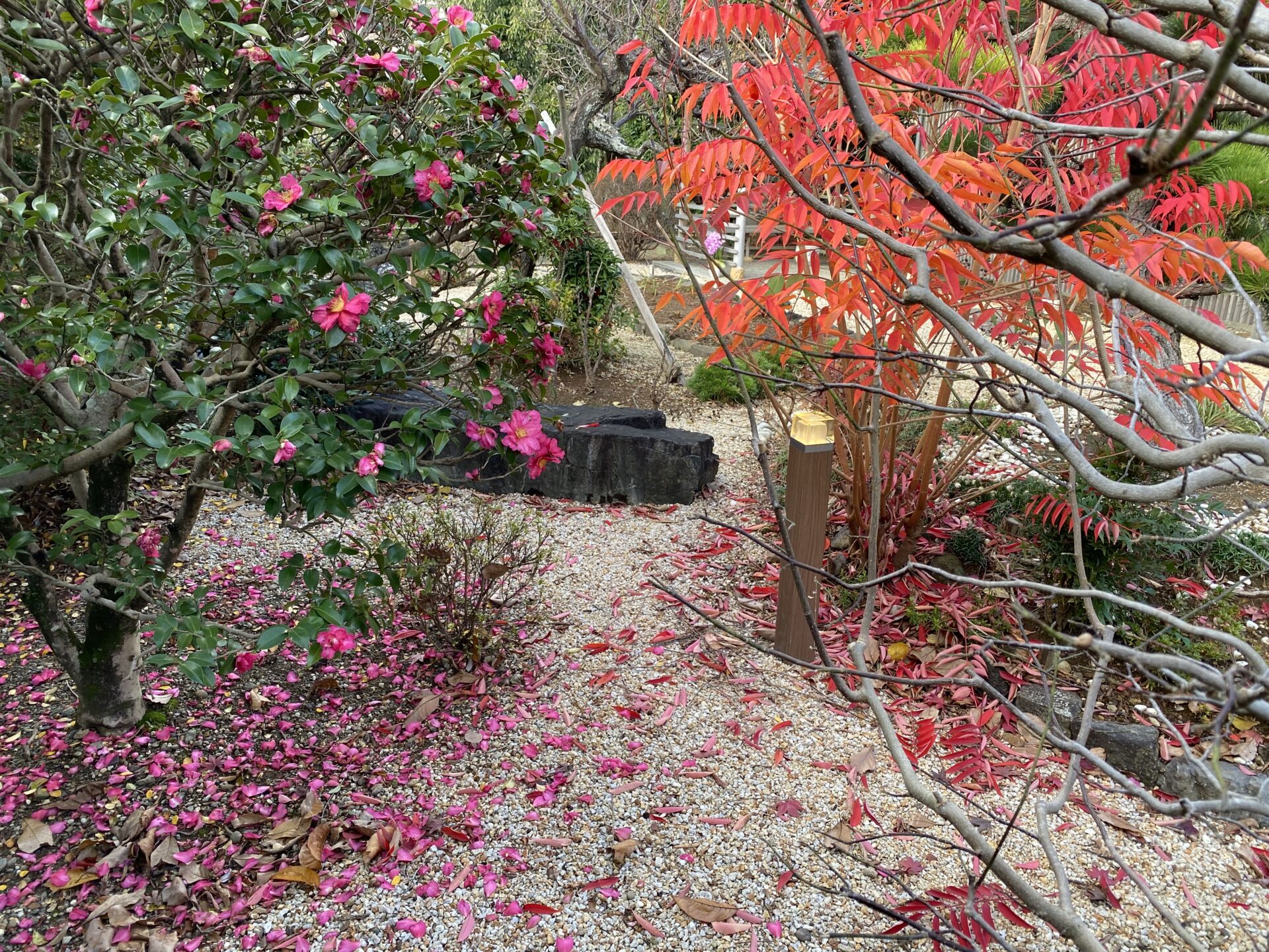 庚申堂の大銀杏も一瞬で黄葉した後は駐車場にたくさん散っていました。春の桜、秋の紅葉は日本人の感性にすっかり根付いてきた光景で、お花見、紅葉狩りなんて行事が行われてきました。紅葉は、古来から様々に書き記されて、源氏物語にも紅葉賀なんて章がありましたね。どうして紅葉なのか内容は良く分かりませんが、古より木々の変化も文学に取り込まれて来たのでしょう。この辺りもその内調べてみましょう。庭の櫨の紅葉も山茶花の花の散りと混ざって昨夜の風で散っていました。これも風情かな。