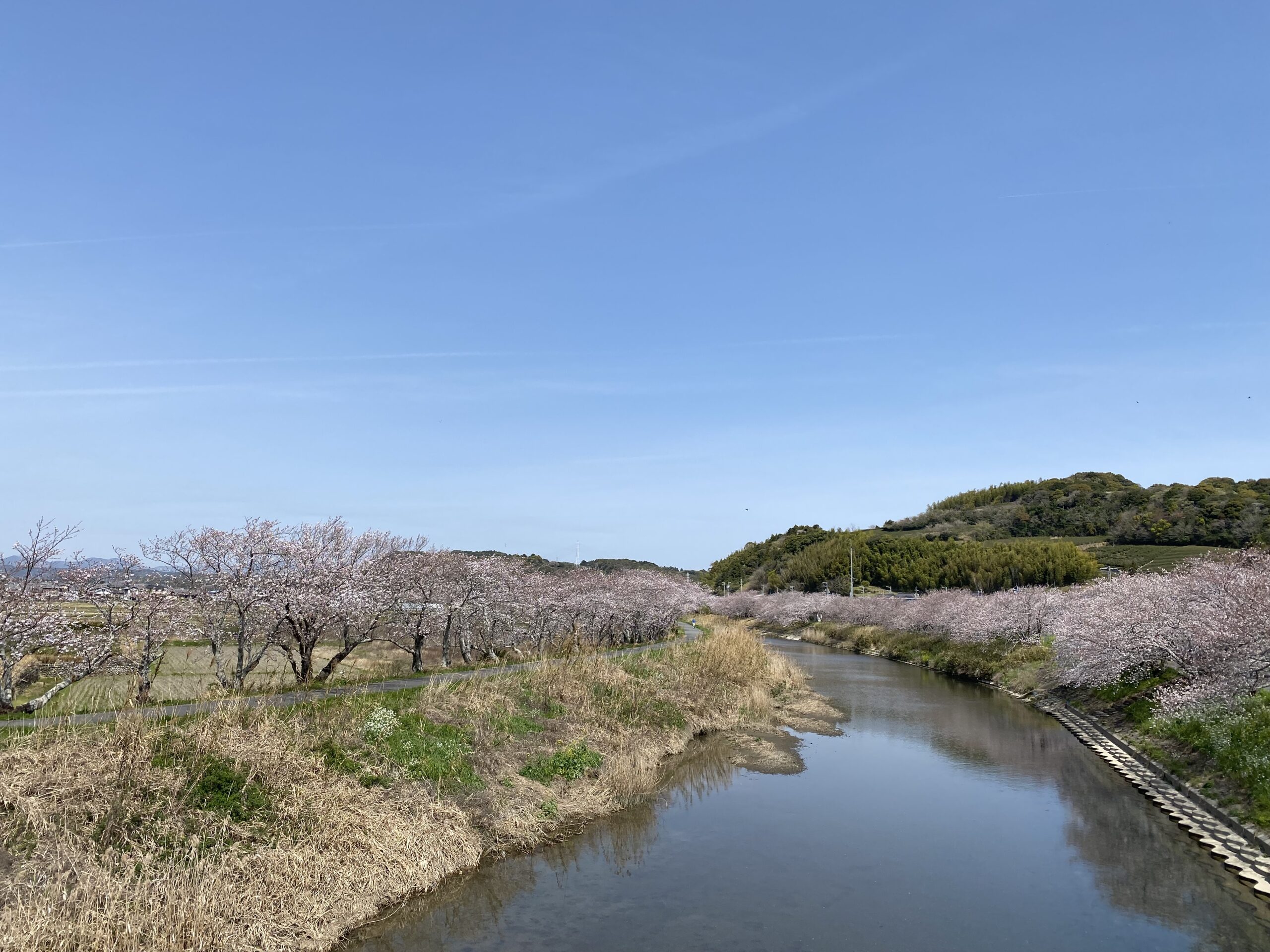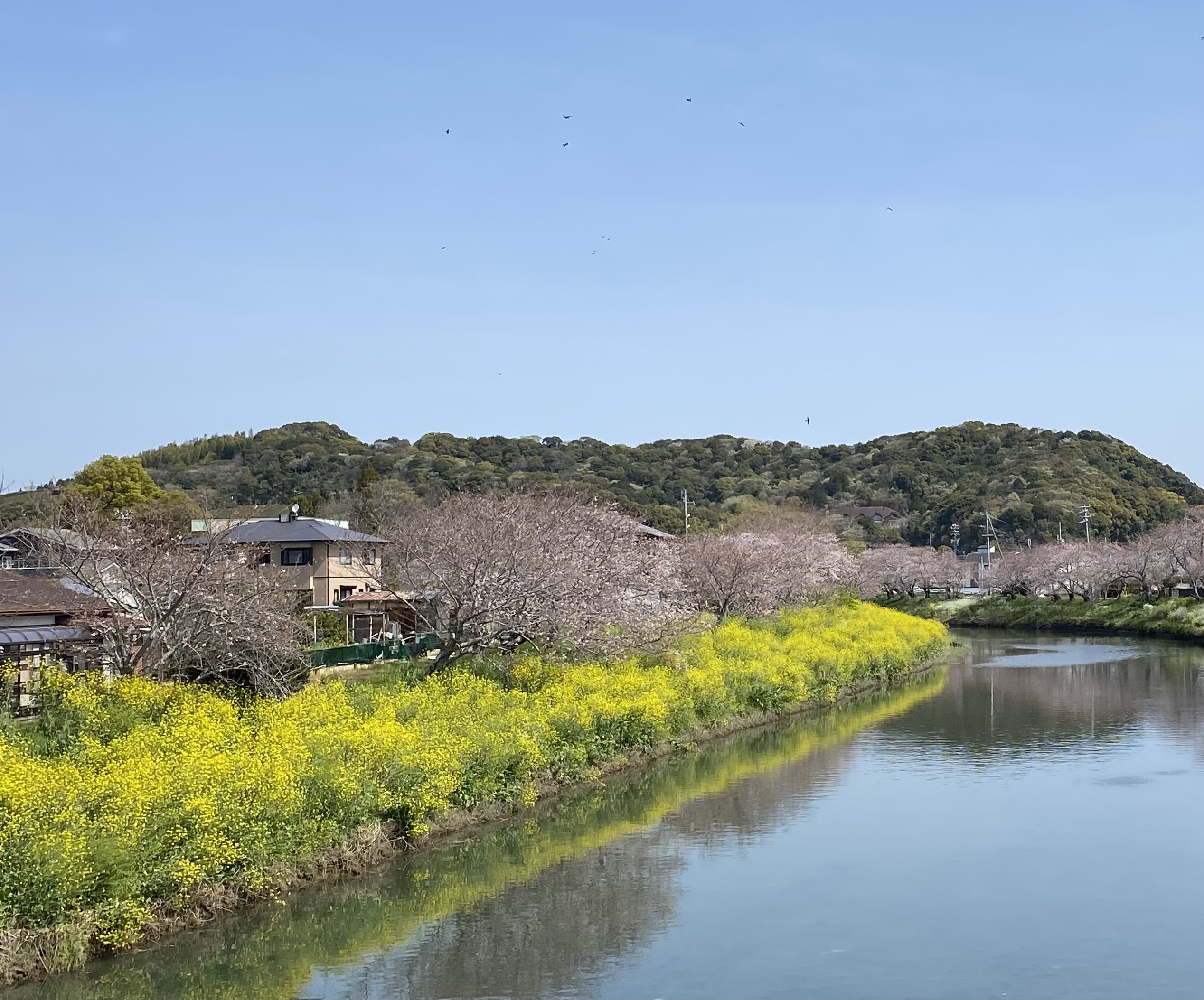 桜の咲く土手に黄色や白い菜の花が密生して花を咲かせているのも季節ですね。